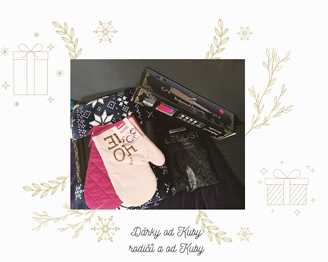 Na Štedrý den jsem byla už po čtvrté u přítele rodiny, kde i bydlíme. Letos nás bylo opravdu hojně, takže i dárků bylo povícero. Od Kuby rodičů jsem dostala chňapky do budoucího doma a nádhernou tmavě modrou deku s beránkem zespod a norským vzorem. Pak taky kulmu, co dělá tři lokny najednou, to by mohlo docela ušetřit čas. Od Kuby na této fotce mám Lelosi Black mamba černé legíny a opravdu jsou jako druhá kůže.